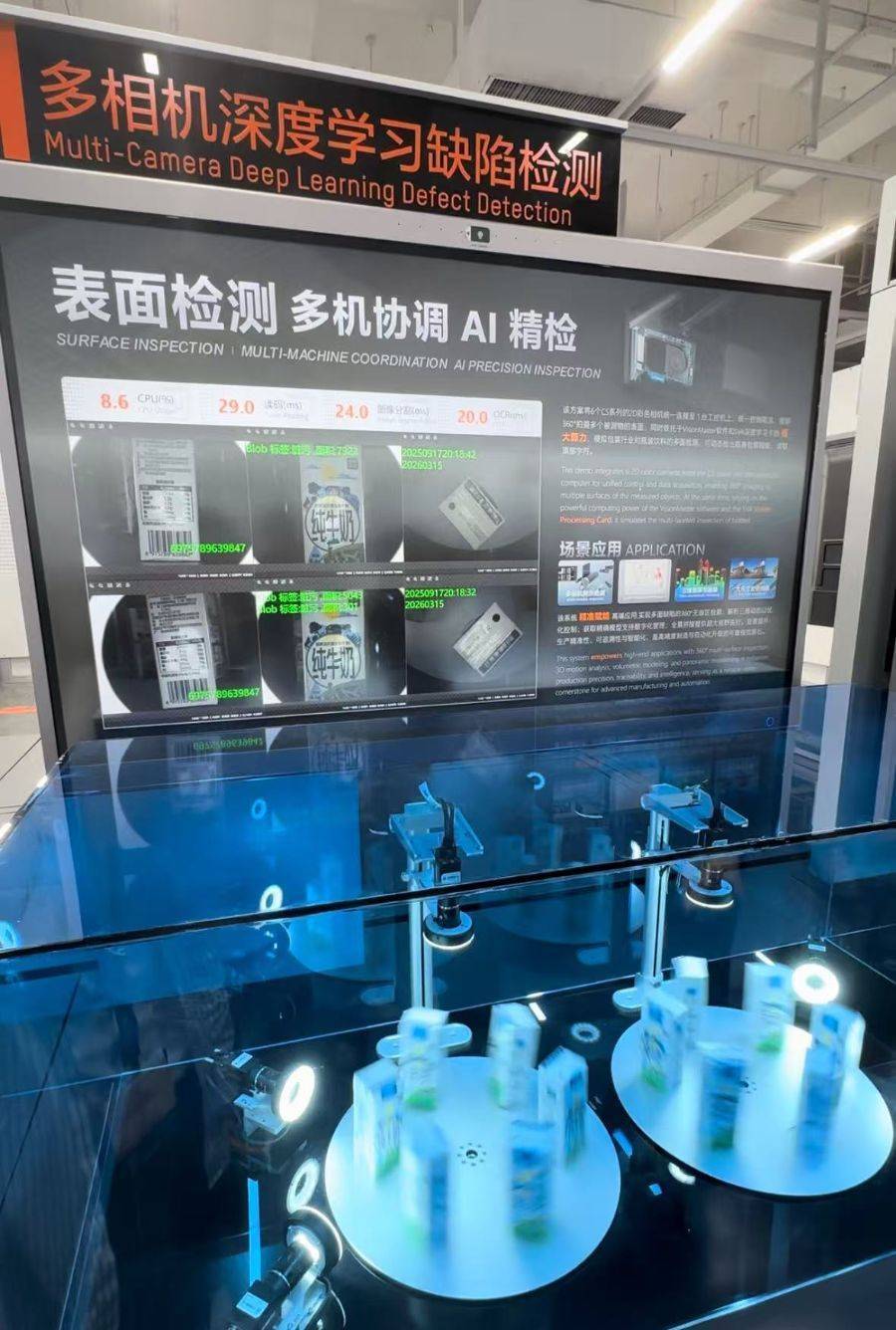贾永华举例,“在柔性质检环节,我们采用机械臂搭载智能相机的一体化方案,通过多角度自主采集,实现产品外观与关键特征的全域覆盖检测。系统不仅能精准识别划痕、磕碰等常规缺陷,更能通过深度学习,定位细微瑕疵与复杂结构异常,大幅提升精度与稳定性,减轻人工目检压力。”